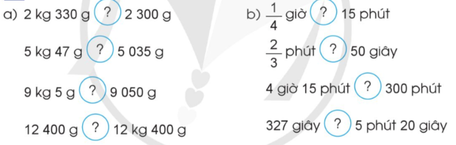 Đổi hai vế về cùng một đơn vị đo rồi điền dấu thích hợp.