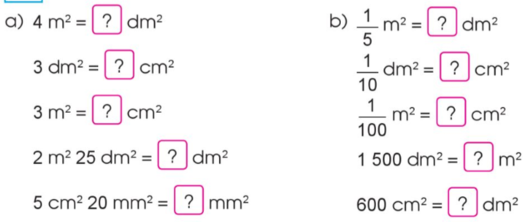 $\frac{1}{{100}}$ m2 = 100 cm2