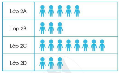 b) Lớp 2C có nhiều học sinh tham gia câu lạc bộ Mĩ thuật nhất.