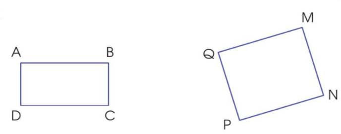 a) Các hình ABCD và MNPQ là hình chữ nhật vì có 4 góc vuông, 2 cạnh dài bằng nhau và hai cạnh ngắn bằng nhau.