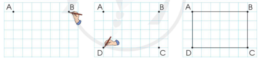 Vẽ hình chữ nhật trên lưới ô vuông theo hướng dẫn sau: