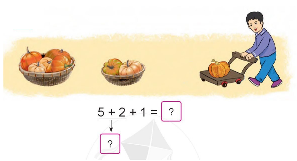 Quan sát tranh điền số thích hợp để hoàn thành phép tính.