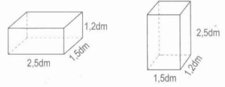 Chú ý: Hai hình hộp chữ nhật đã cho có một hình đặt nằm, một hình đặt đứng nhưng hai hình hộp chữ nhật đó đều có ba kích thước là 2,5dm; 1,5dm; và 1,2dm nên có diện tích toàn phần bằng nhau nhưng diện tích xung quanh khác nhau.