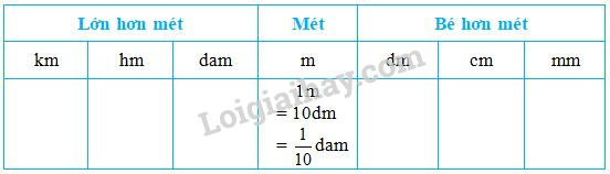 Dựa vào lí thuyết về các đơn vị đo độ dài đã học để hoàn thành bảng đã cho.
