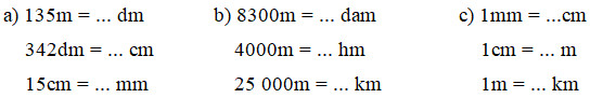 a) Viết cho đầy đủ bằng đơn vị đo độ dài sau: Viết số hoặc phân số thích hợp vào chỗ chấm: