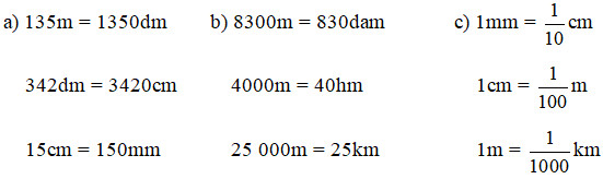 Áp dụng các cách đổi:    1km = 1000m;    1m = 10dm = 100cm.