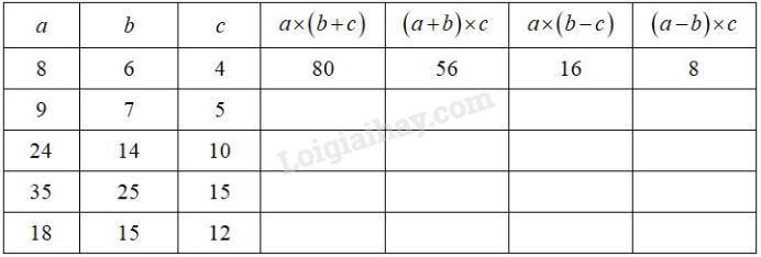 Câu 7. Cho \(a = 5\,; \;6\,;\; 7\,;\; 8\). Hãy tính giá trị của biểu thức : \(23085 + 1235 ×a.\)