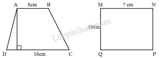 Hình thang ABCD có chiều cao bằng chiều rộng của hình chữ nhật MNPQ. Biết hai hình đó có diện tích bằng nhau và có kích thước như hình dưới đây. Tính chiều cao của hình chữ nhật.