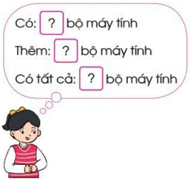 – Để tìm số bộ máy tính có tất cả trong phòng ta lấy số bộ máy tính ban đầu có cộng với số bộ máy tính mang thêm vào.