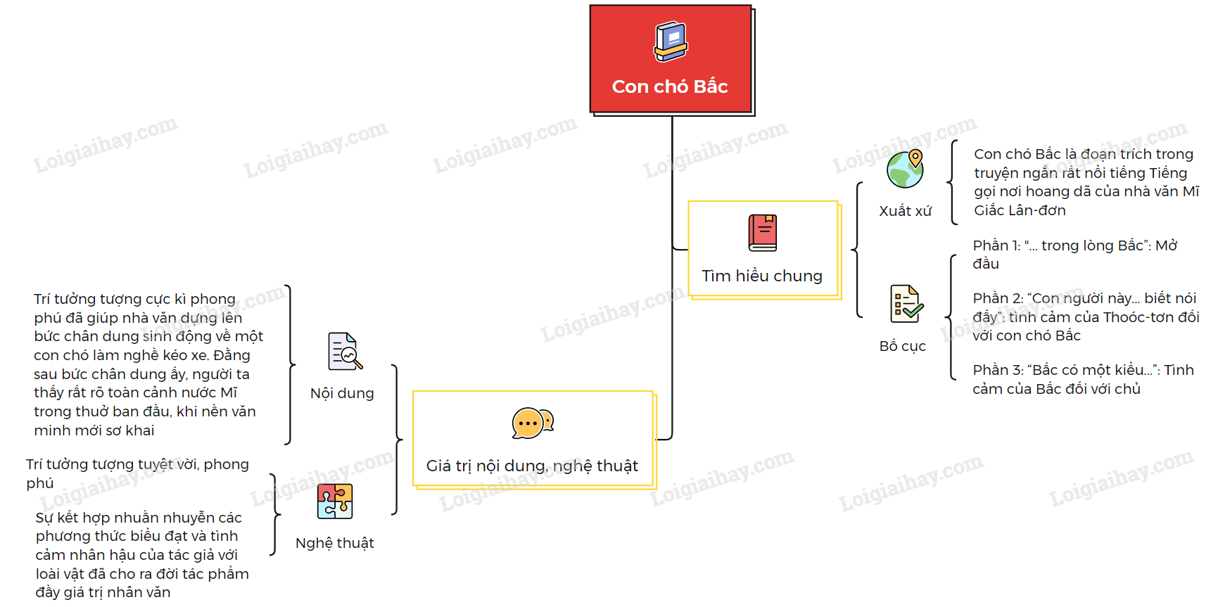 Sơ đồ tư duy về đoạn trích “Con chó Bấc”: