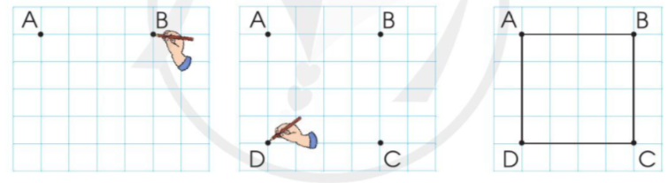 Vẽ hình vuông trên lưới ô vuông theo hướng dẫn sau: