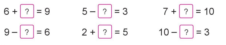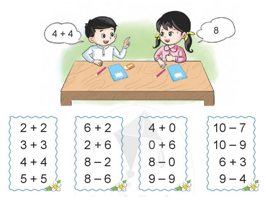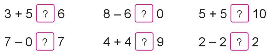 5 + 5 = 10                          8 – 6 = 2