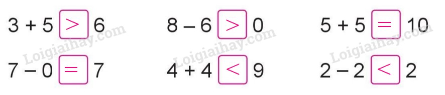 Tính kết quả của các phép tính rồi so sánh hai số.