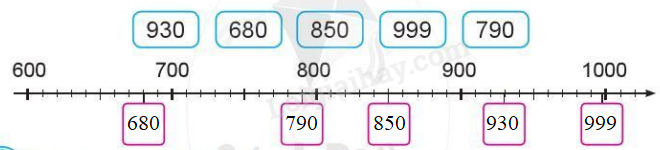 Quan sát tia số ta thấy hai vạch chia nhỏ cạnh nhau cách nhau 10 đơn vị, từ đó em điền các số còn thiếu vào dấu hỏi chấm cho thích hợp.