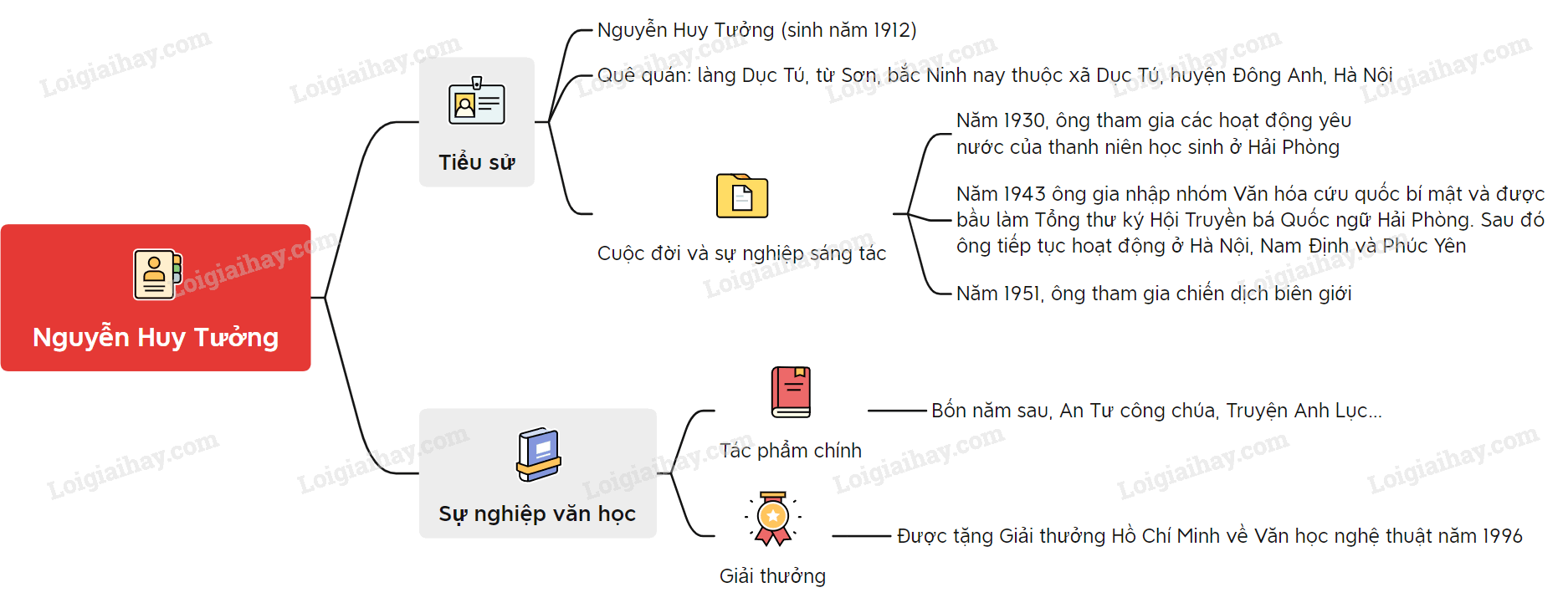 Sơ đồ tư duy về nhà văn Nguyễn Huy Tưởng: