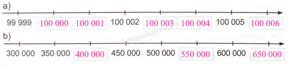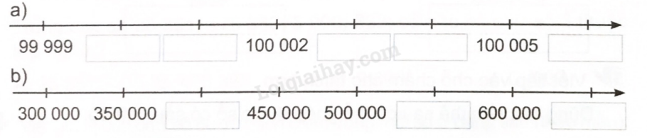 b) Đếm thêm 50 000 đơn vị rồi điền số còn thiếu vào chỗ trống.