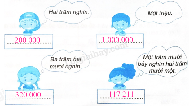 Viết số lần lượt từ hàng triệu, hàng trăm nghìn, hàng chục nghìn, hàng nghìn, hàng trăm, hàng chục, hàng đơn vị