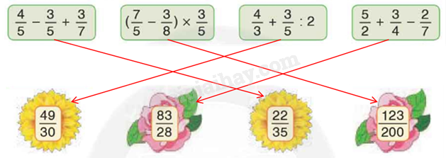 \(\frac{4}{5} – \frac{3}{5} + \frac{3}{7} = \frac{1}{5} + \frac{3}{7} = \frac{7}{{35}} + \frac{{15}}{{35}} = \frac{{22}}{{35}}\)