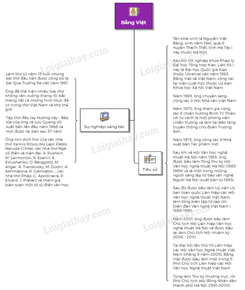 Sơ đồ tư duy về tác giả Bằng Việt: