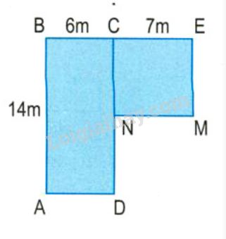 – Diện tích mảnh đất = diện tích mảnh đất hình chữ nhật ABCD + diện tích mảnh đất hình vuông CEMN.