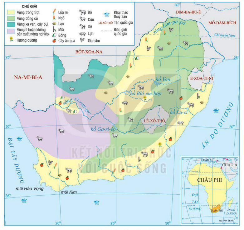 * Sự phân bố của một số nông sản chính ở CH Nam Phi.