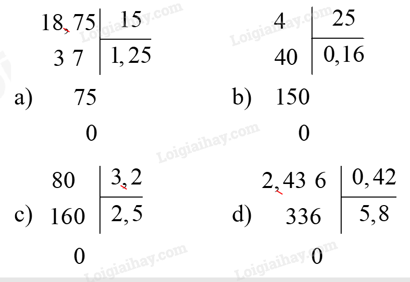 – Đếm xem có bao nhiêu chữ số ở phần thập phân của số chia thì chuyển dấu phẩy ở số bị chia sang bên phải bấy nhiêu chữ số 0.