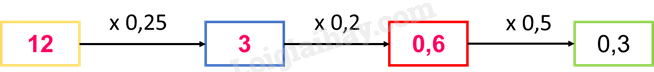 Đổi các số 0,1; 0,2; 0,5; 0,25 thành các phân số. Áp dụng tính chất phép chia phân số thì ta nhân với phân số nghịch đảo của phân số đó