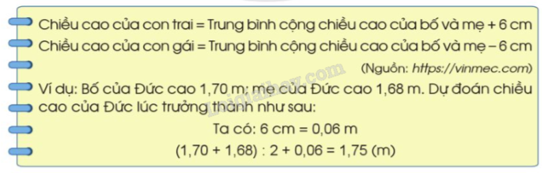 Trao đổi với các bạn cùng bàn rồi sử dụng cách tính trên để tính xem ở độ tuổi trưởng thành mỗi bạn có thể cao bao nhiêu.