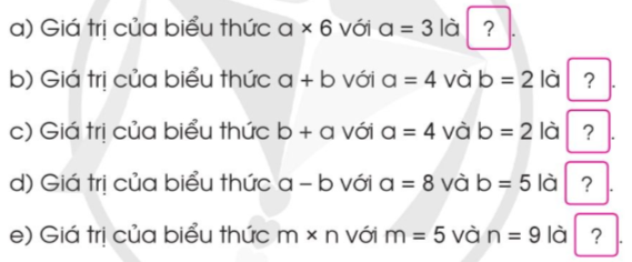 Mỗi lần thay chữ bằng số, ta tính được một giá trị của biểu thức.