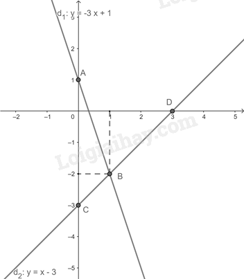 Vậy giao điểm của (d1) và (d2) là điểm \(B\left( {1; – 2} \right)\).
