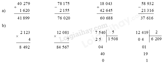 Nhẩm lại cách đặt tính và tính các phép toán đã học rồi trình bày bài.