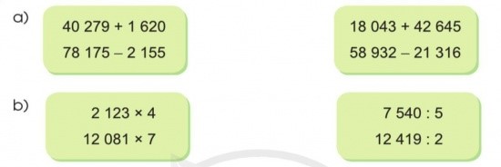 Nhẩm lại cách đặt tính và tính các phép toán đã học rồi trình bày bài.
