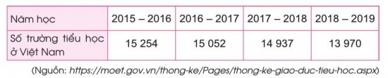 Bảng sau cho biết số trường tiểu học ở Việt Nam từ năm 2015 đến năm 2019: