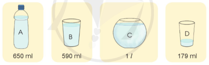 Ta có 179 ml < 590 ml < 650 ml < 1 000 ml