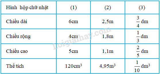 Giải bài tập 1, 2, 3 trang 34, 35 VBT toán 5 bài 114 : Thể tích hình hộp chữ nhật với lời giải chi tiết và cách giải nhanh, ngắn nhất