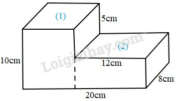 Thể tích khối gỗ bằng tổng thể tích cuả hai hình chữ nhật (1) và (2).