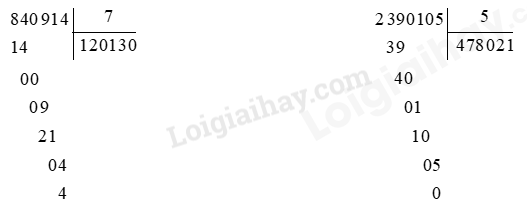 Thực hiện phép chia 219 842  : 6, thương của phép chia là số hộp xếp được, số dư của phép chia là số cái li còn thừa