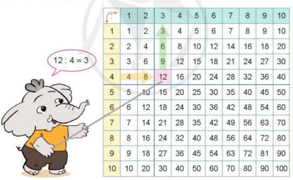 Ví dụ: Tìm kết quả của phép chia 12 : 4 = ?