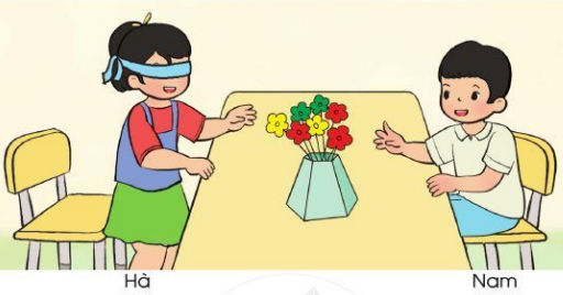 Hà và Nam chơi trò “Bịt mắt chọn hoa”.