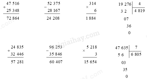 Thực hiện đặt tính rồi tính theo các quy tắc đã học.