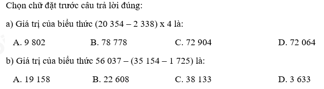Giá trị của biểu thức (20 354 – 2 338) x 4 là … Mẹ mang 100 000 đồng đi chợ, mẹ mua thịt hết 57 000 đồng