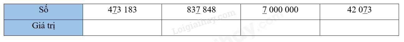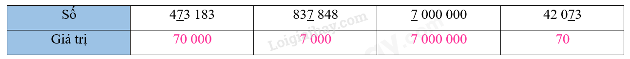 Viết giá trị của chữ số được gạch chân trong mỗi số ở bảng sau:
