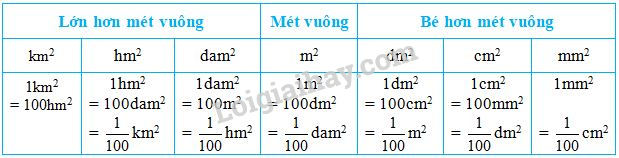 Để đọc (hoặc) viết các số đo diện tích ta viết số đo trước, sau đó đọc (hoặc viết) tên đơn vị diện tích.