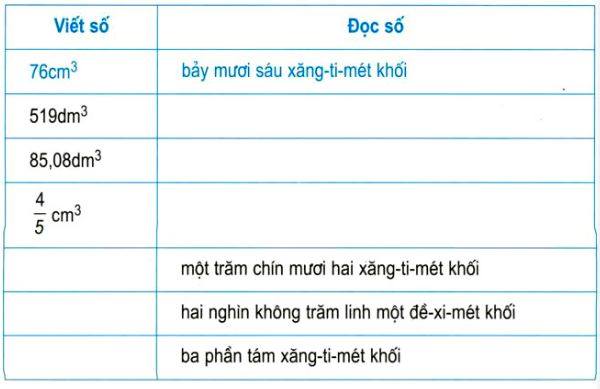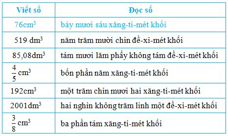 Để đọc (hoặc viết) các số đo thể tích ta đọc (hoặc viết) số đo trước rồi đọc (hoặc viết) tên đơn vị đo thể tích.