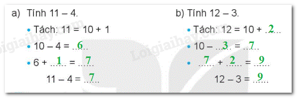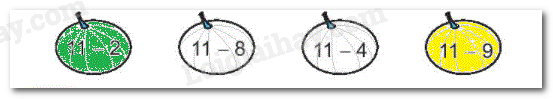 Vậy ta tô màu vàng vào phép tính 11 – 9 và tô màu xanh vào phép tính 11 – 2.