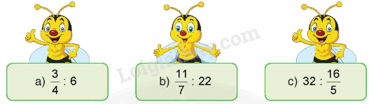 – Khi chia số tự nhiên cho phân số, ta nhân số tự nhiên đó với phân số đảo ngược của phân số thứ hai