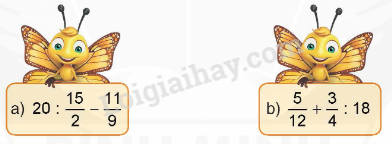a) $20:\frac{{15}}{2} – \frac{{11}}{9} = 20 \times \frac{2}{{15}} – \frac{{11}}{9} = \frac{8}{3} – \frac{{11}}{9} = \frac{{24}}{9} – \frac{{11}}{9} = \frac{{13}}{9}$