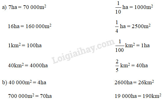 Áp dụng cách đổi: 1ha = 1hm2 ; 1km= 100hm= 100ha ;  1ha = 10 000m2