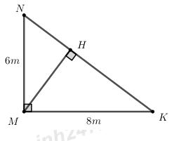 \(\Rightarrow NH = \dfrac{{MN.MK}}{{NK}} = \dfrac{{6.8}}{{10}} = 4,8\,\,\left( m \right)\)