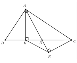 Câu 8. Cho tam giác ABC vuông tại A \(\left( {AB < AC} \right)\), đường cao \(AH\,\,\left( {H \in BC} \right)\), trên cạnh BC lấy điểm D sao cho \(BD = BA\), vẽ CE vuông góc AD \(\left( {E \in AD} \right)\).